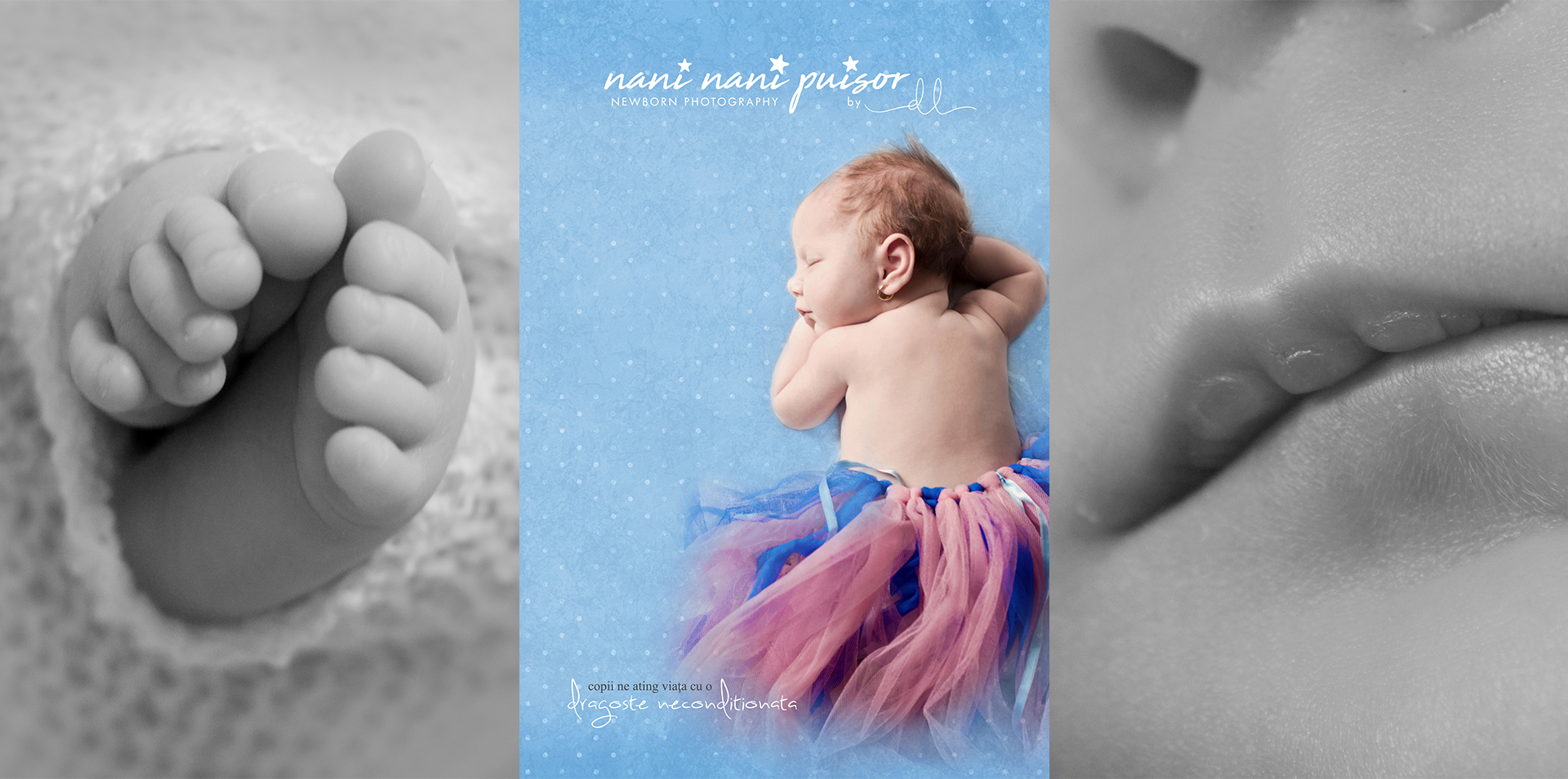 Ședința foto de nou-născuţi stilizată (Newborn Photography) surprinde inocența primelor zile din viața unui bebeluș, când dorm mult și profund.